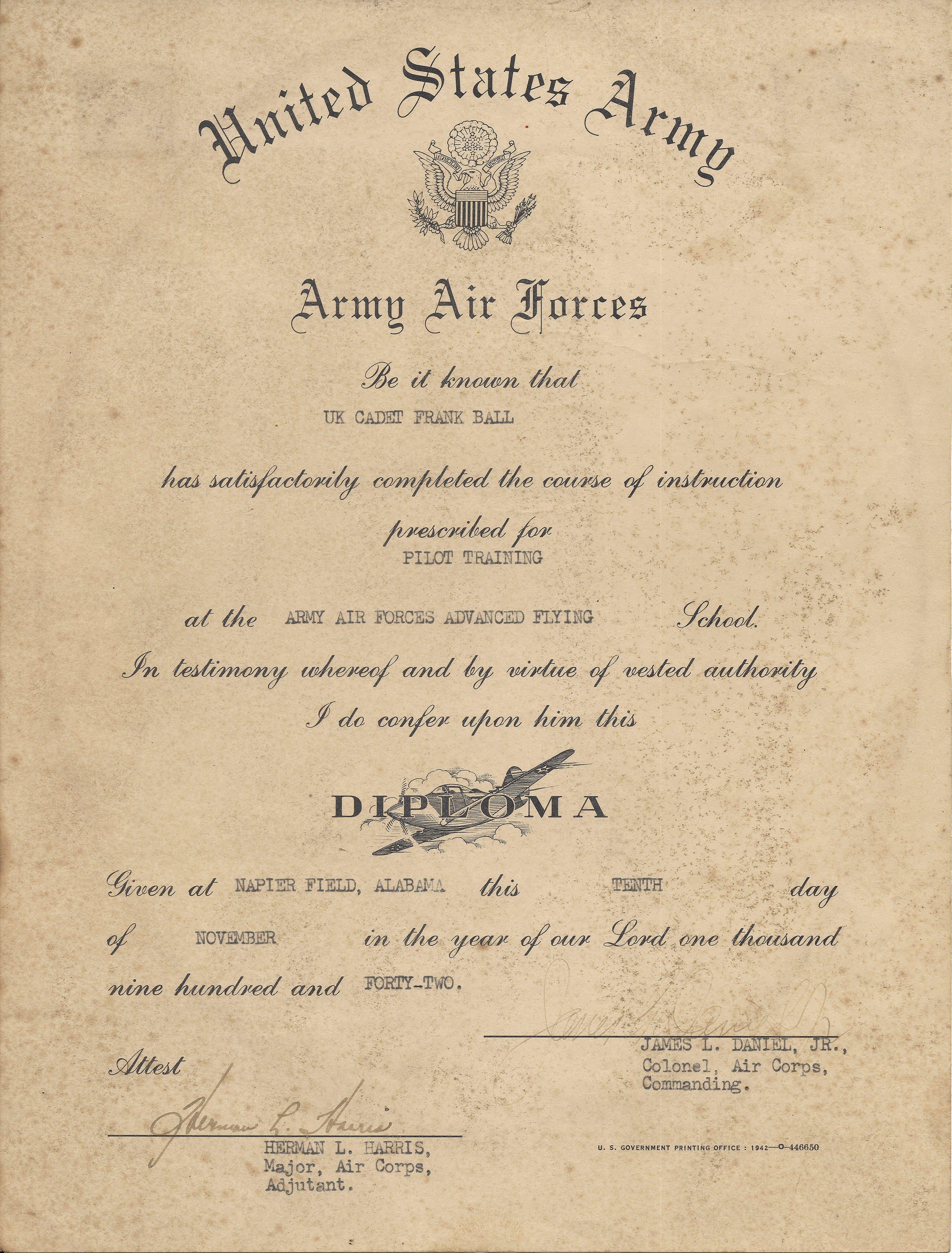 Advanced Flying School, Napier Field, Dothan, Alabama. |
