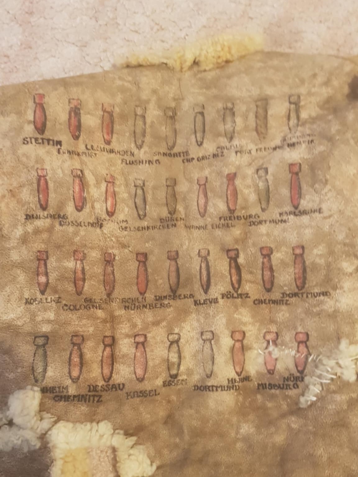 Thompson's sheepskin jerkin painted with a bomb and the target of each one of his raidsThompson family |