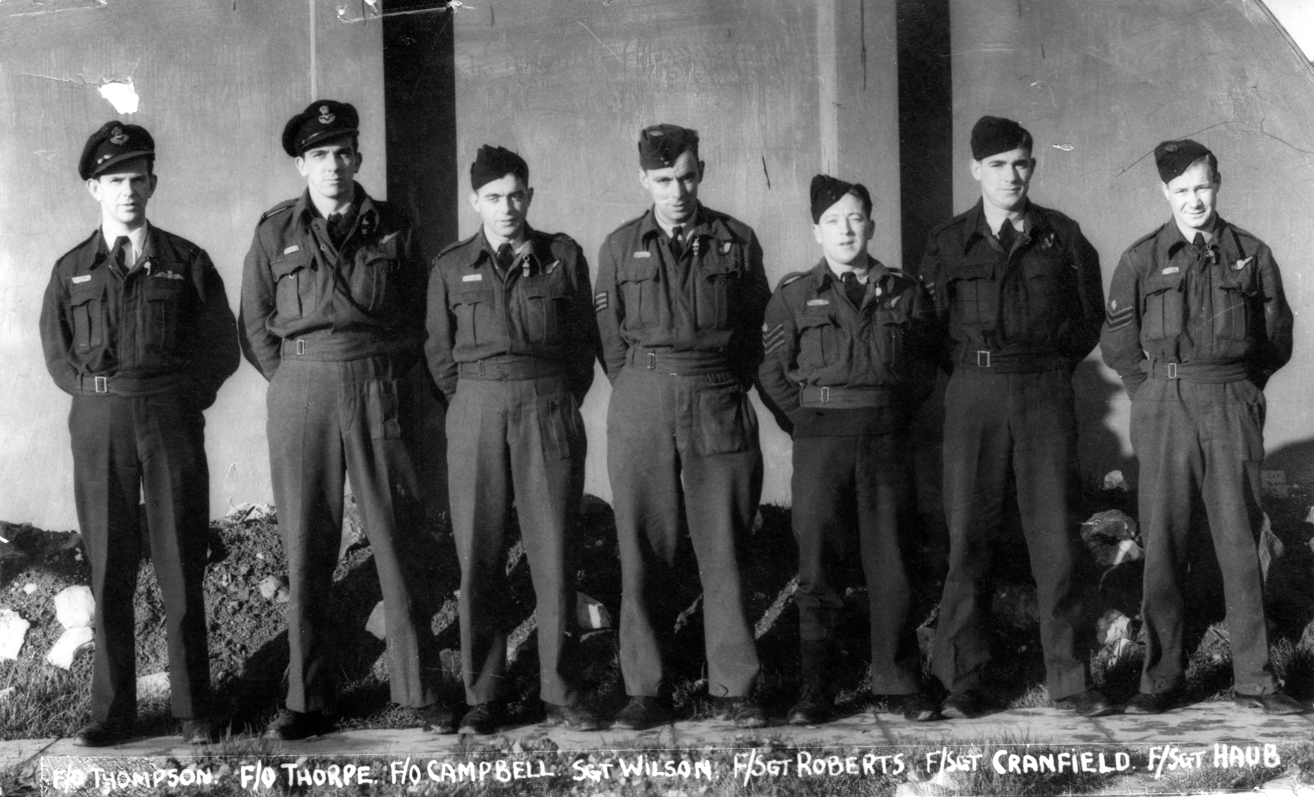 The Thompson crew on 550 Sqn: L-R: Thompson, Thorp, Campbell, Wilson, Roberts, Granfield, Haub550 Sqn Archives |