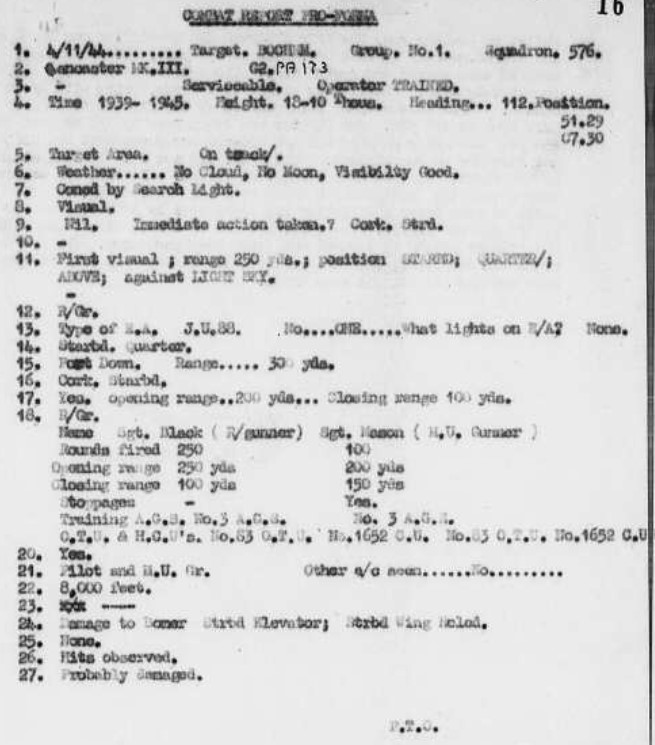 Prosper coking plant & benzol refinery Load: 1x 4,000lb ‘Cookie’, 16x 500lb bombs Sighted a bomber being shot down after being coned at 1937. |